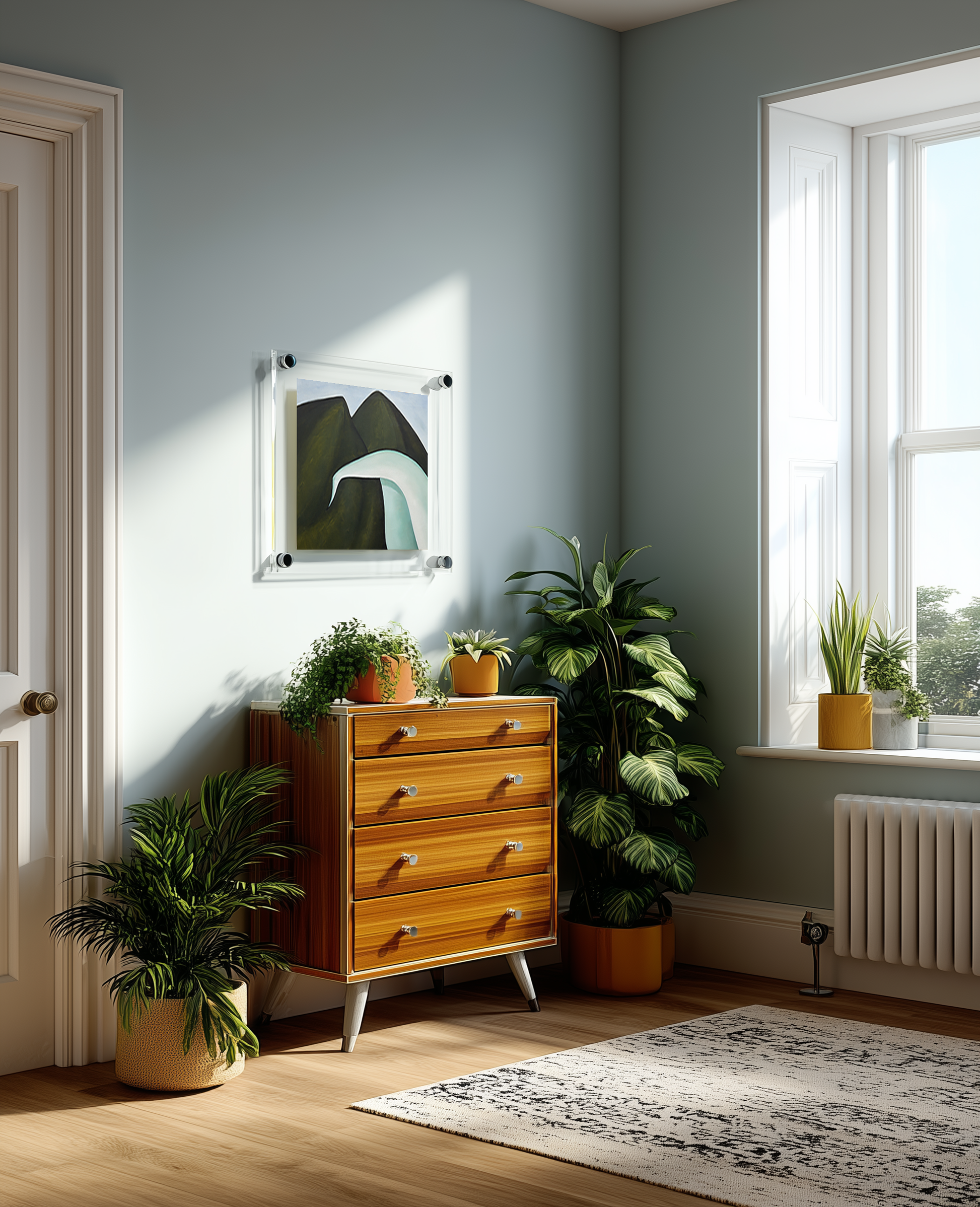 *************SIZING************* This frame is meant to fit art measuring 14x14 or smaller. Ideally your art should be 4" shorter in both directions compared to the size of the frame. For example this frame has a total size of 10x10 which is the optimal size for 6x6 art because it will create a 2" clear border on all sides. This frame will fit art measuring 4x4, 5x5, 6x6, and 7x7. Showcase your photos and art with this Easy-Hang Acrylic Frame. Standoff bolts set this frame 3/4" from the wall. Our unique bar and wire hanging design saves you from the painstaking process of drilling 4 holes into your wall at pinpoint locations. The mounting process is as simple as can be with a single hook and nail. TOTAL FRAME SIZE : 10x10 inches perfect for square art and photos. A 2 inch border on all sides is recommended. MATERIAL : Matching 3/16" thick cast acrylic sheets. Total thickness 3/8". STANDOFF BOLTS : Includes cap, barrel, and 2 clear washers. Choose from stainless steel or aluminum anodized bolts in 3/4 inch or 1 inch diameter. Both sizes will set frame 3/4" off wall. Available finishes include stainless steel, bronze, black, titanium, and gold. HARDWARE : Hanging hook and nail included.