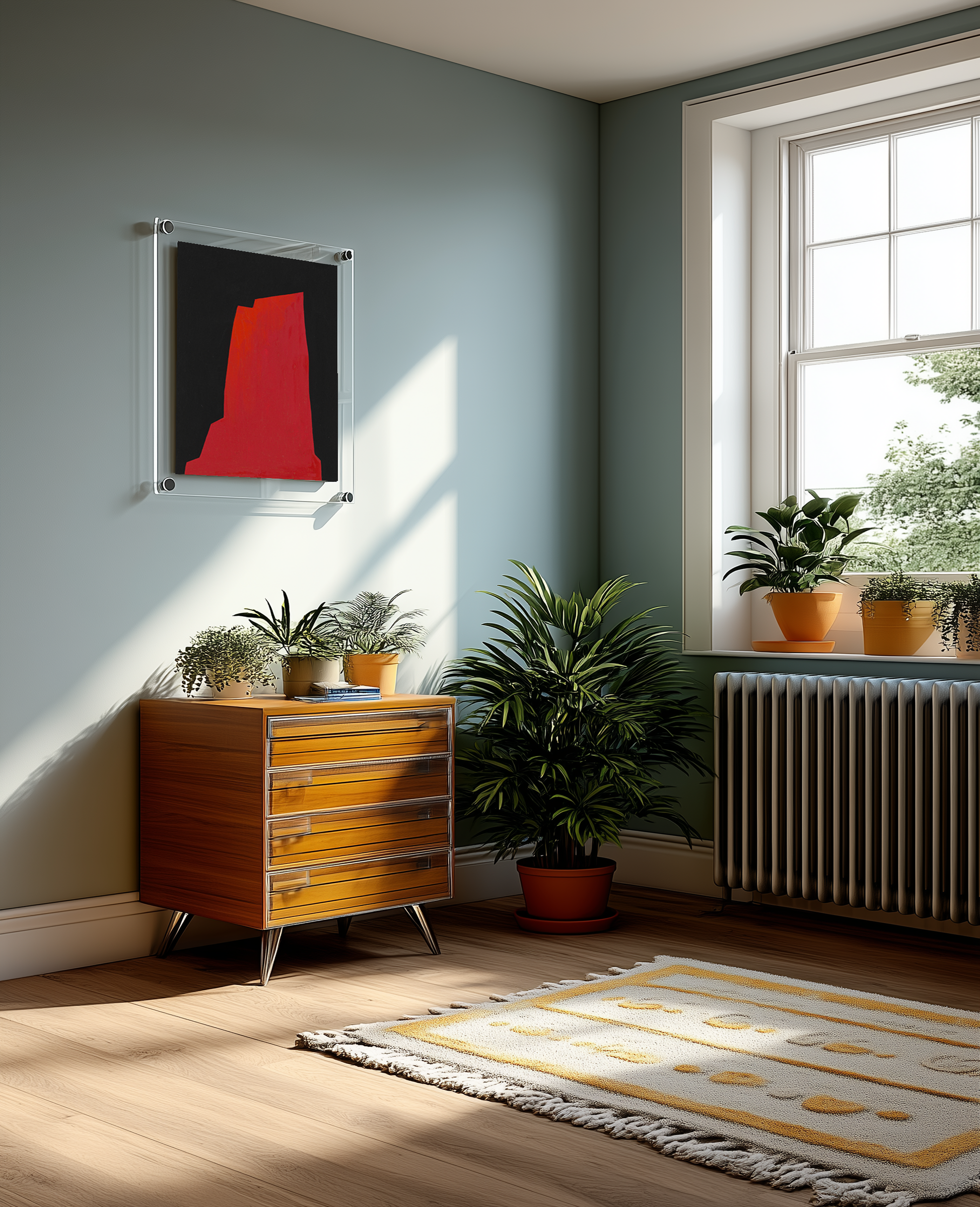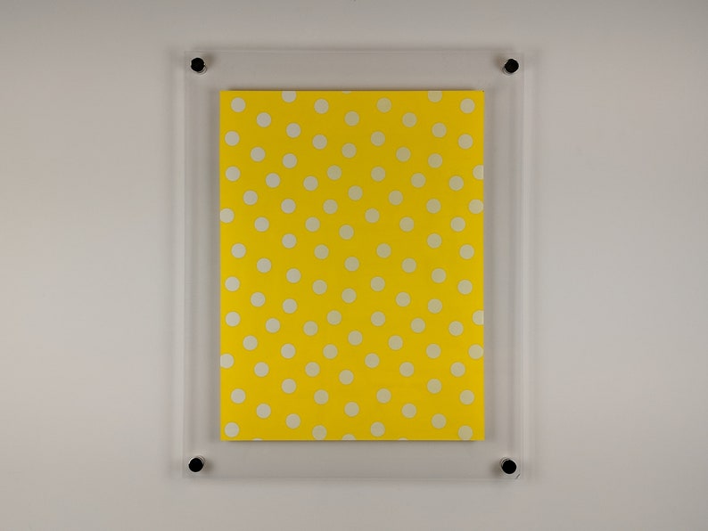Showcase your photos and art with this Easy-Hang Acrylic Frame. Standoff bolts set this frame 3/4" from the wall. Our unique bar and wire hanging design saves you from the painstaking process of drilling 4 holes into your wall at pinpoint locations. The mounting process is as simple as can be with a single hook and nail.