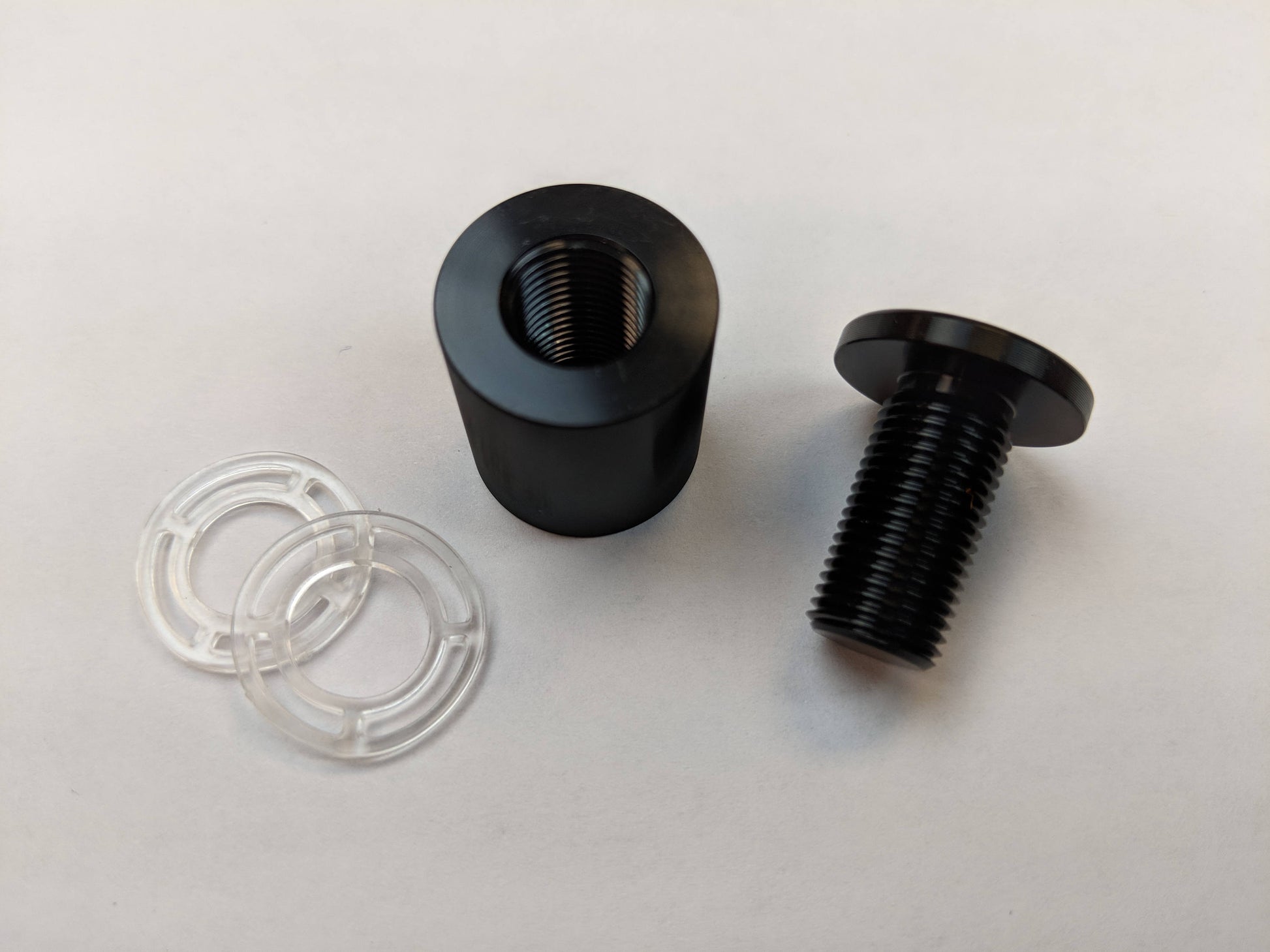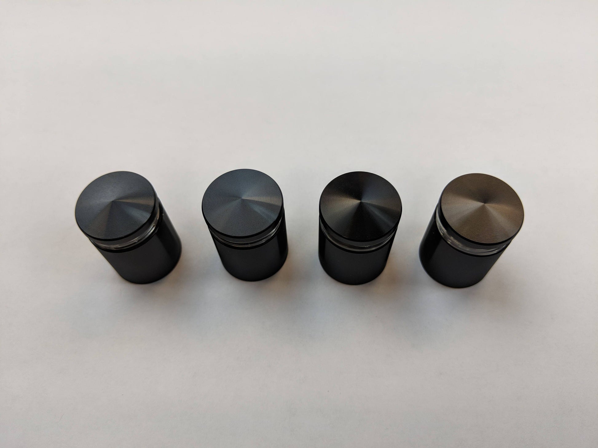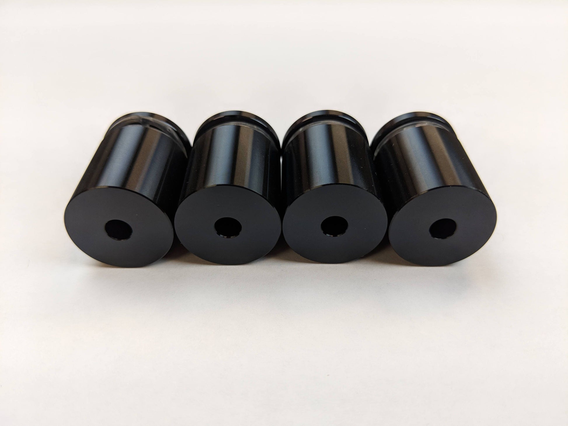 - 4 Black Anodized Aluminum Standoff Bolts measuring 3/4" in diameter and 3/4" tall
